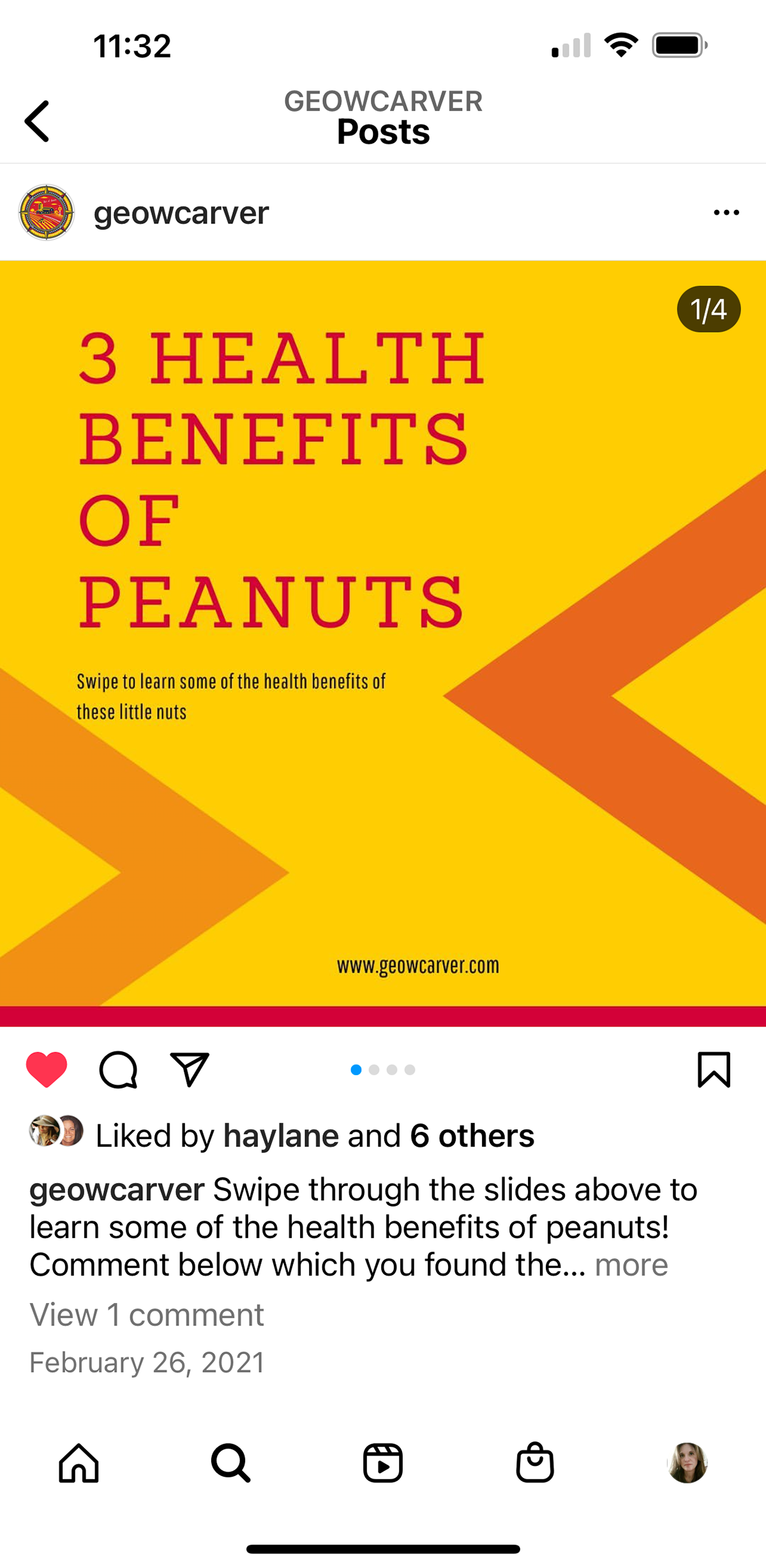 Host live cooking demos and educational reels celebrating Carver’s contributions to food and agriculture.