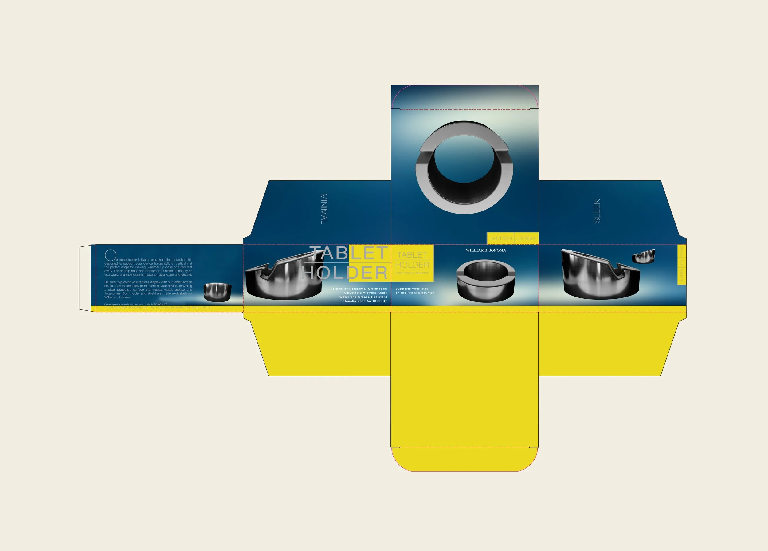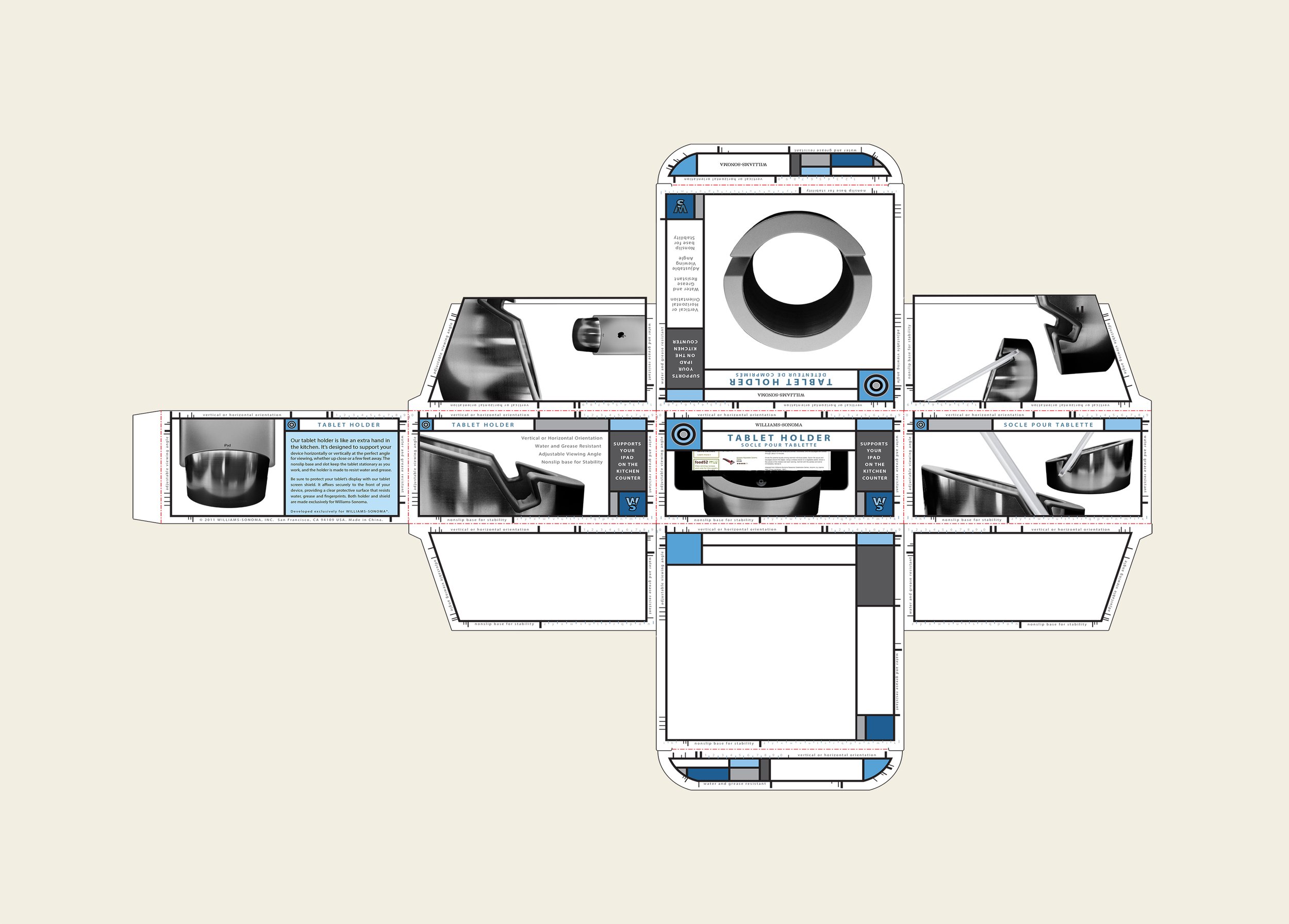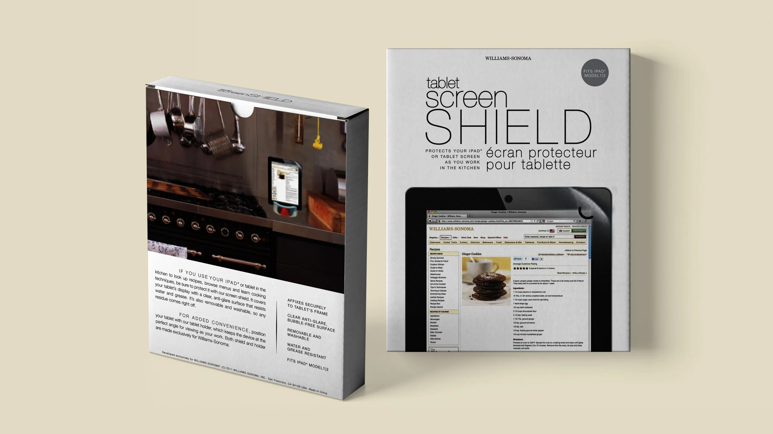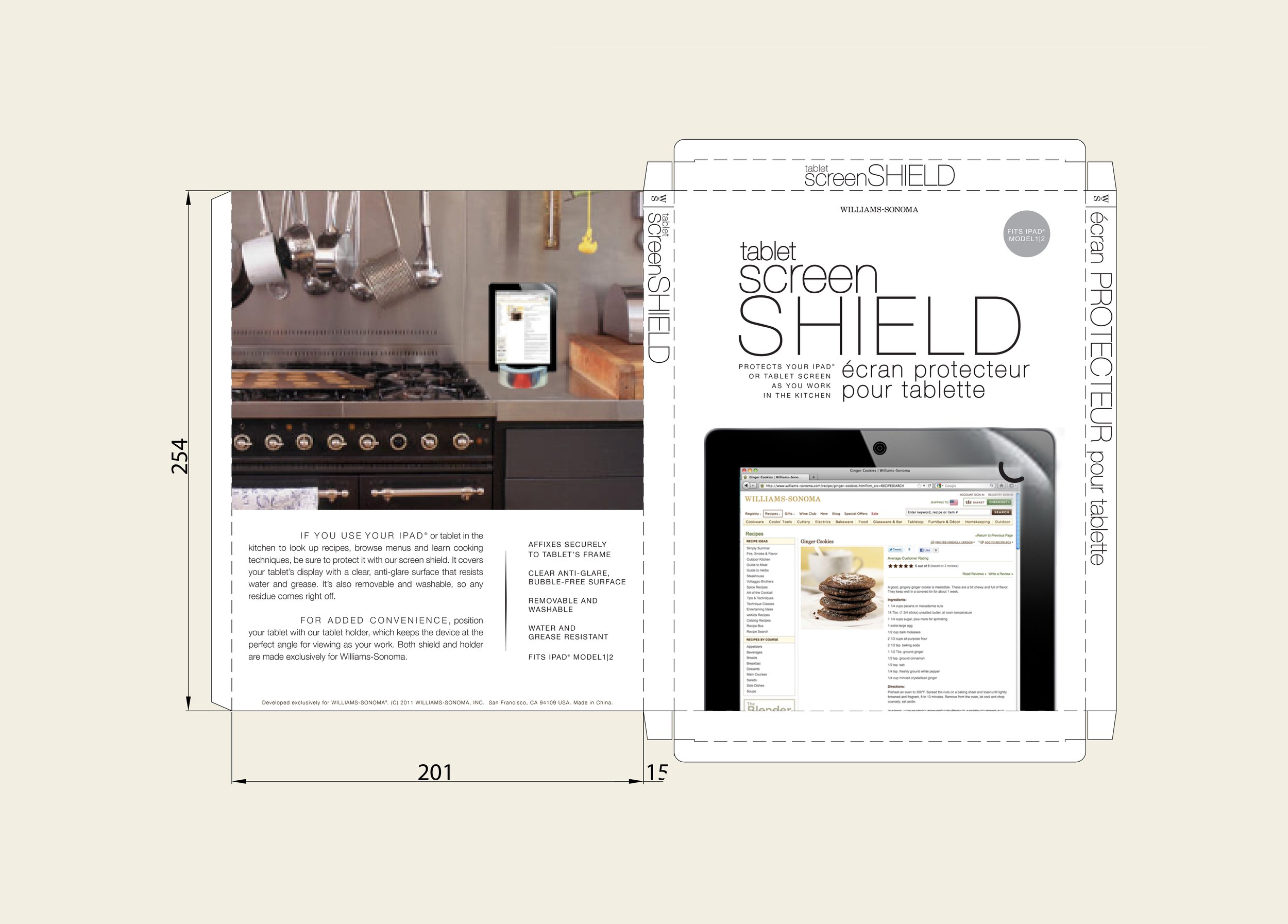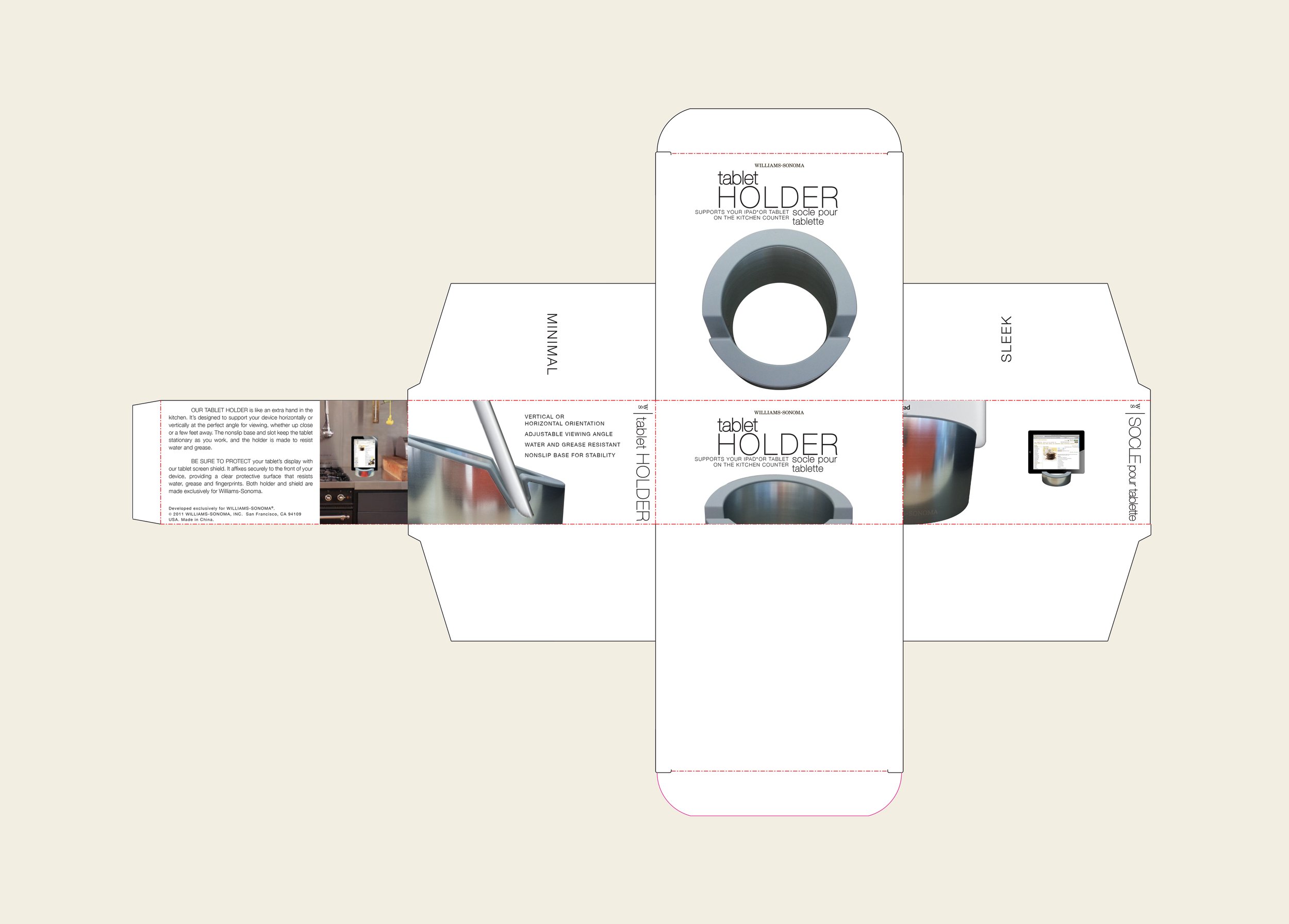 To showcase Williams Sonoma'‘s signature elegance and commitment to quality, design packaging for a new iPad holder and iPad shield that beautifully blends sophisticated aesthetics with practical functionality.